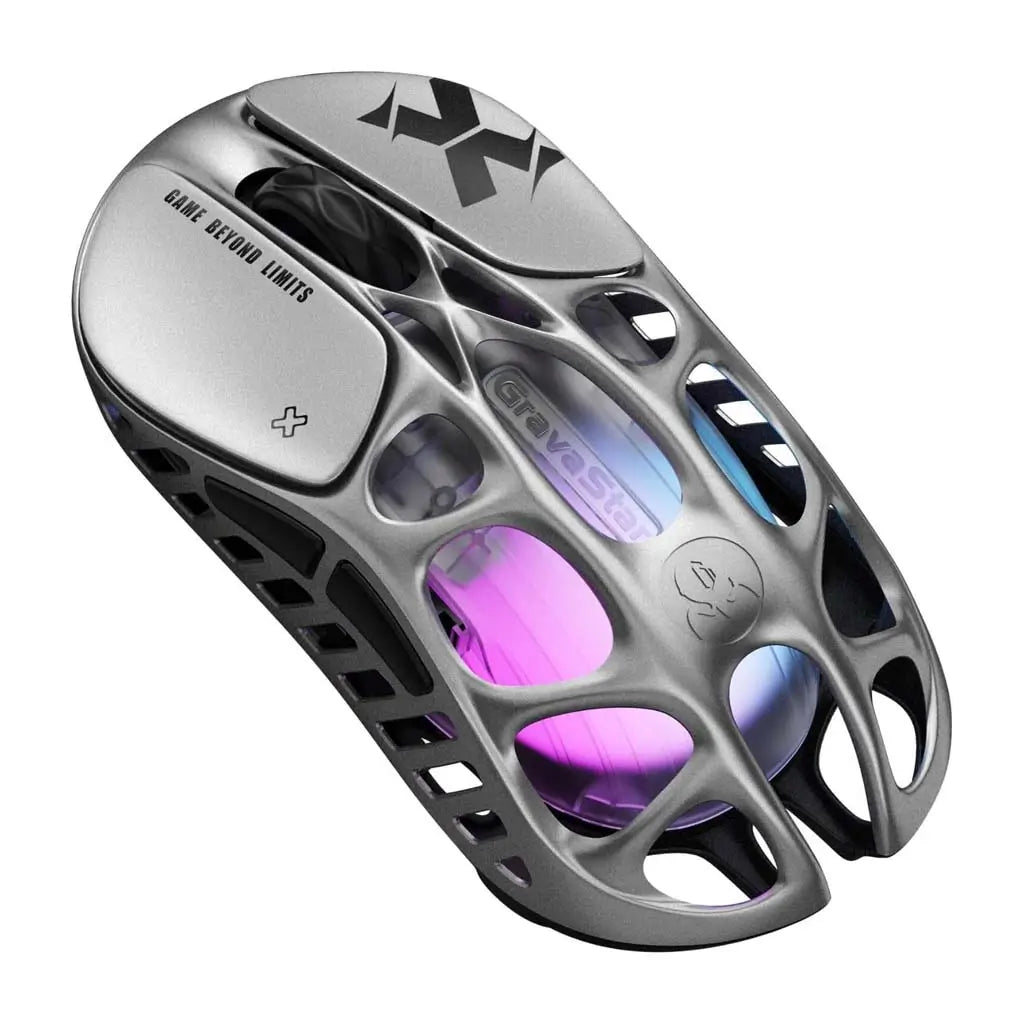 GravaStar Mercury X Wireless Gaming Mouse, 32,000 DPI PAW 3950 Sensor, RGB Lighting, 5 Programmable Buttons, Magnesium Alloy Hollow Frame, 1000Hz Polling Rate, Interstellar Silver
